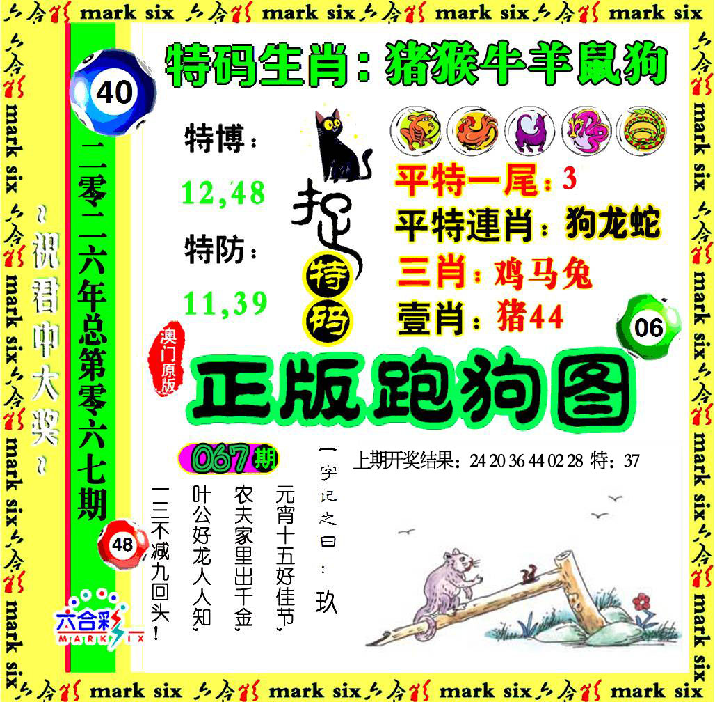 066期【单(龙鼠马猴)双(牛猪蛇鸡)】开:37马准